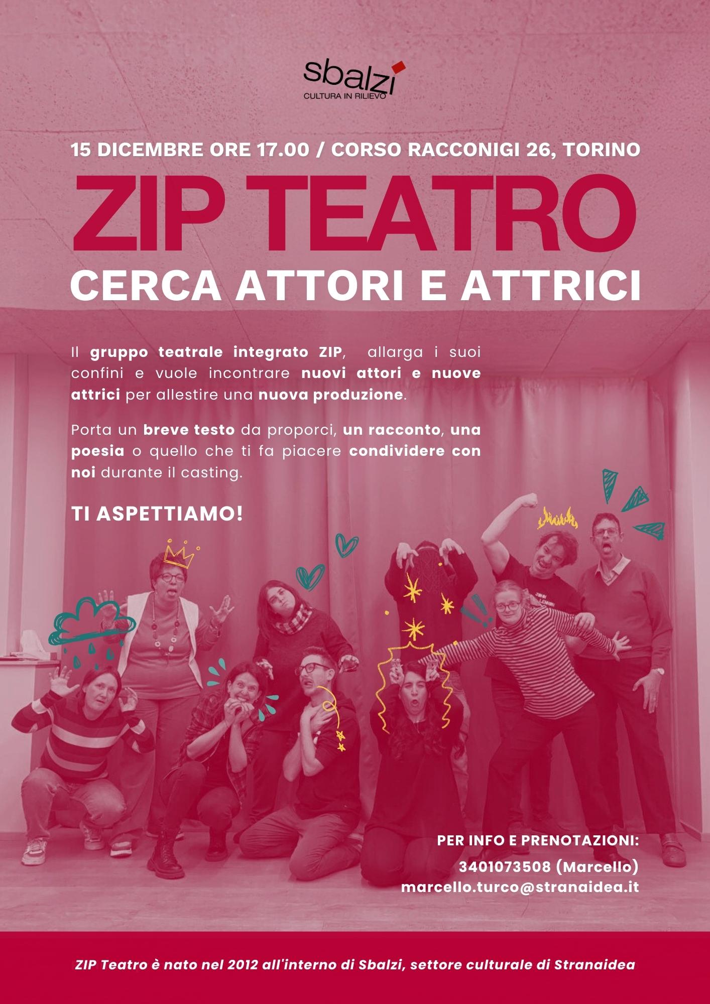 La compagnia integrata Zip Teatro cerca attori e attrici per allestire una nuova produzione teatrale.